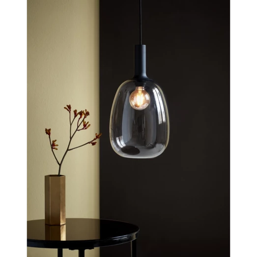 Alton i røgfarvet glas skaber en smuk samhørighed mellem den sorte top og den flotte runde form, som gør serien yderst elegant. Det røgfarvede glas og de fine former giver lysskæret en blød og varm glød, hvilket giver en behagelig belysning. Glas er en stor tendens i indretningen og kombinationen af glas og det matte, sorte metal giver Alton et elegant udseende.