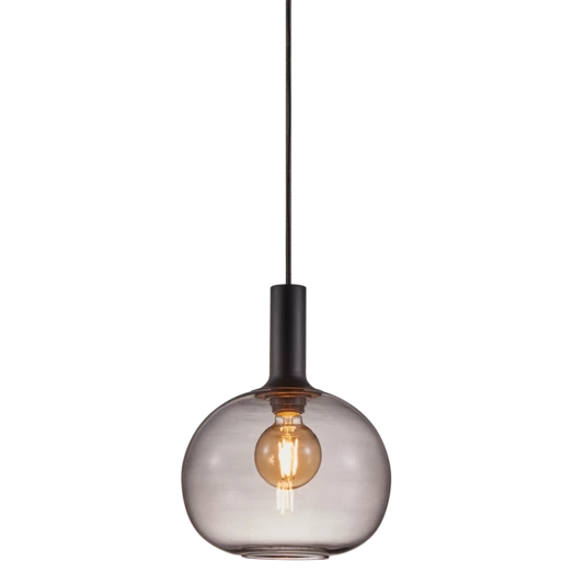 Det røgfarvede glas og de fine former giver lysskæret en blød og varm glød, hvilket giver en behagelig belysning.