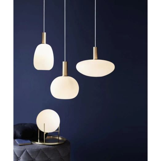 Brug gyldne toner som kontrast til den nordiske minimalisme. Alton serien skaber en smuk samhørighed mellem det enkle opalhvide glas og de flotte detaljer i børstede messing. De varme metaller er stadigvæk hotte i indretningen og kombinationen af messing og glas giver serien et graciøs udseende og supplerer hinanden på finest vis.