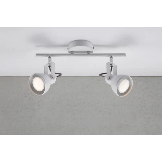 Aslak-serien har på én og samme tid et moderne og industrielt udtryk, der udspringer af formen, samlingen og de æstetiske detaljer. Aslak har en behagelig lysflade, som giver et effektfuldt og smukt lys og fungerer perfekt i rum, hvor du mangler god belysning, der kan retningsbestemmes. Lækker og praktisk spotlampe med to spots i hvid. Denne spotlampe kan placeres forskellige steder i boligen og skabe fokus eller hygge alt efter, hvordan den placeres.