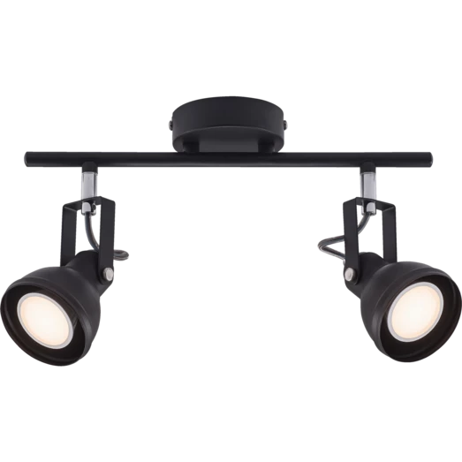 Aslak-serien har på én og samme tid et moderne og industrielt udtryk, der udspringer af formen, samlingen og de æstetiske detaljer. Aslak har en behagelig lysflade, som giver et effektfuldt og smukt lys og fungerer perfekt i rum, hvor du mangler god belysning, der kan retningsbestemmes. Lækker og praktisk spotlampe med to spots i sort. Denne spotlampe kan placeres forskellige steder i boligen og skabe fokus eller hygge alt efter, hvordan den placeres.