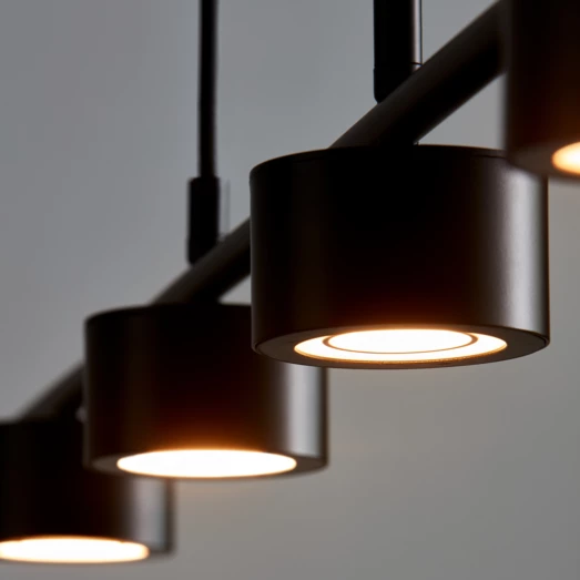 Clyde 4-skinne pendel i nordisk design med indbygget lysdømpefunktion. Clyde pendel vil passe perfekt over det lange spisebord eller køkkenø, da de 4 lyskilder udsender en masse lys.