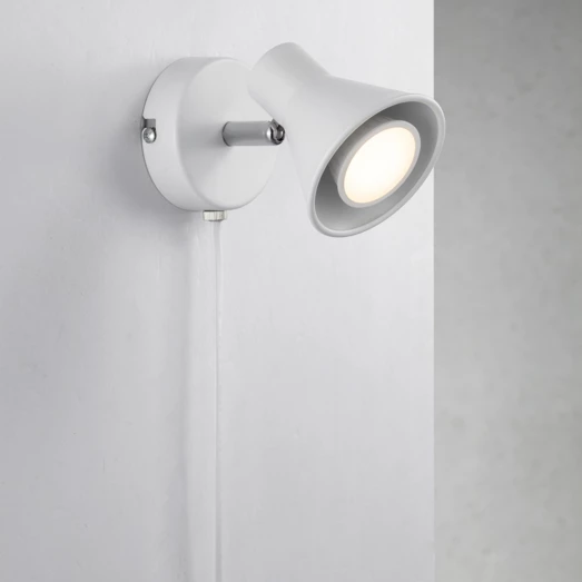 Eik-serien er yderst dekorativ i sin enkelthed. Skærmens facon skaber en behagelig lysflade, som giver et behageligt og smukt lysskær. Diskret og praktisk spotlampe med et enkelt spot i hvid. Denne spotlampe kan placeres forskellige steder i boligen og skabe fokus eller hygge alt efter, hvordan den placeres.