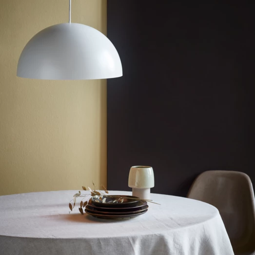 Nordlux Ellen pendel har et enkelt design, med runde forme. Lampen giver et godt lys ned af rettet, hvis du søger en lampe der skal lyse spisebord eller køkkenbordet op.