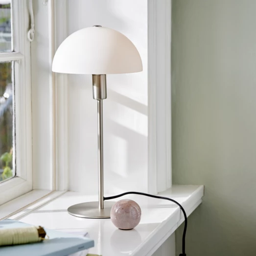 Med sine referencer til minimalistisk og tidløst skandinavisk design passer Ellen smukt ind i de fleste indretninger. Den eksklusive skærm i opalglas tilføjer en elegant kontrast til den lette ramme og bidrager med visuel volumen og et bredt lysfelt. Ellen er den perfekte bordlampe, hvis du vil lyse dit hjem op med et blødt og behageligt lys.