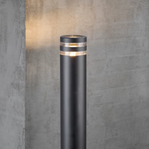Udendørs bedlampe med et moderne look. Lampen passer til enhver have, med sit stilrene og diskrete look. I samme serie fås også en mindre bedlampe og to forskellige væglamper.