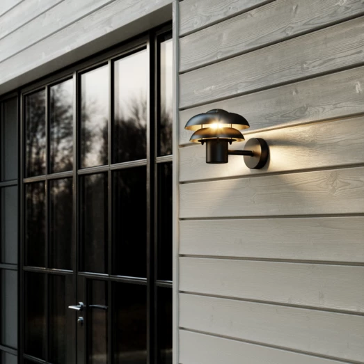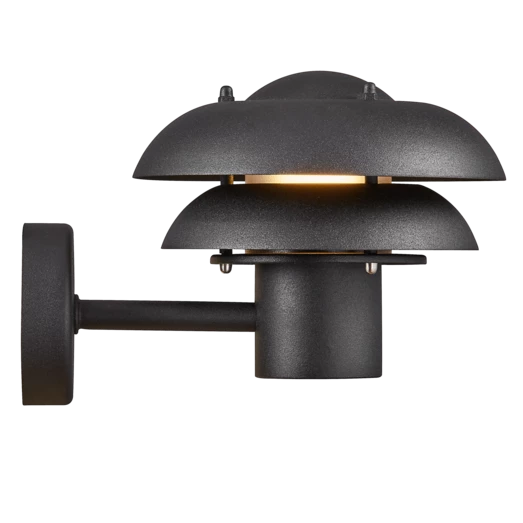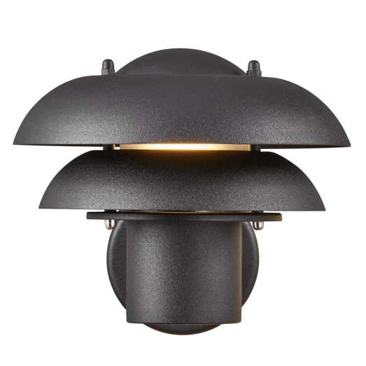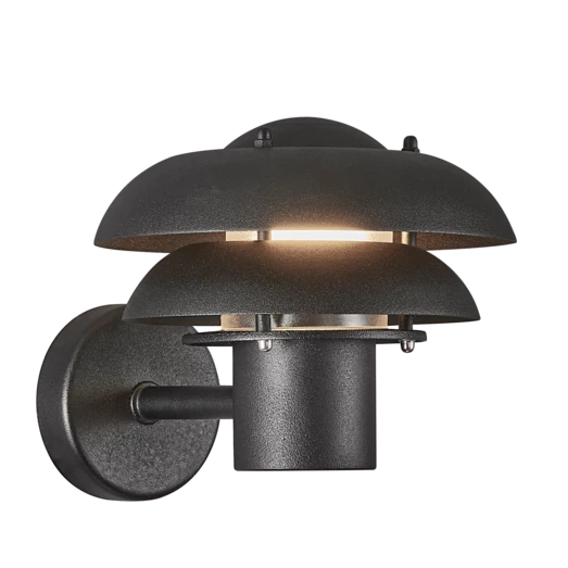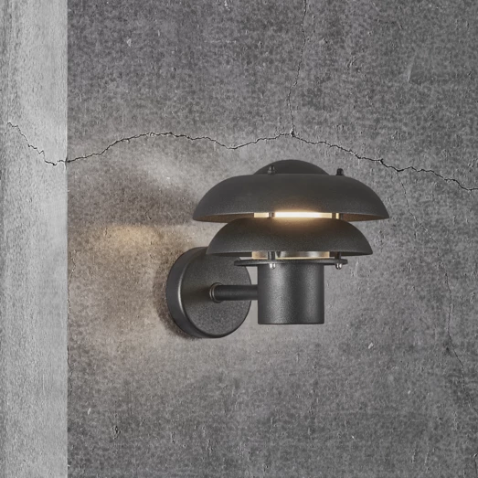 Kurnos 20 udendørs væglampe er fremstillet i sort metal og egner sig godt til indgangspartier, indkørsler, terrassen eller andre uderum. Med dets elegante, buede skærme får du et funktionelt men blændfrit, behageligt lys.