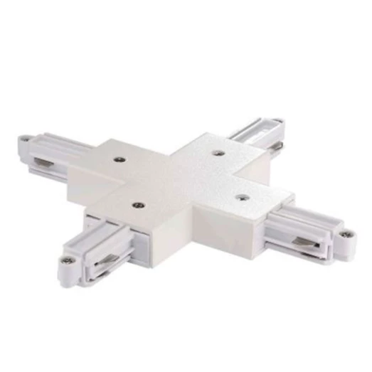X-formet samlestykke som anvendes til sammensætning af flere strømskinner fra Link systemet. Samlestykket monteres i skinnernes endestykker og dermed kan flere skinner kombineres.