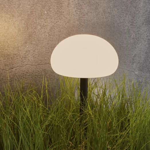 Sponge har fået sit navn efter svampe i skovbunden, hvor inspirationen til design, formsprog og udtryk også er hentet. Det simple design og bløde former gør Sponge til en utrolig elegant serie, som er velegnet inde som ude. Med det indbyggede batteri kan Sponge placeres og flyttes, som du vil, og samtidigt kan lysstyrken indstilles i tre niveauer. Batteriet har en holdbarhed på op til fem timer ved fuld kraft og endnu længere, hvis der skrues ned til hyggebelysning. Batteriet oplades nemt via det medfølgende USB-stik.Mulighederne er mange med denne smukke spydlampe. Placér den eksempelvis i bedet, langs indkørslen eller terrassen. Sponge spydlampe er fremstillet i hård plast, og er holdbar overfor vind og vand.