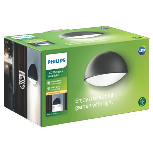 I denne Philips Dust væglampe er der integreret LED lyskilde, som giver et varmt, hvidt lys, der skaber en hyggelig stemning. Med en levetid på 15.000 timer får du en LED lyskilde med lang brugstid. Foruden den almindelige garanti på 2 år tilbyder Philips 5 års garanti på LED systemet, hvilket indebærer LED modulet og driveren i denne lyskilde.