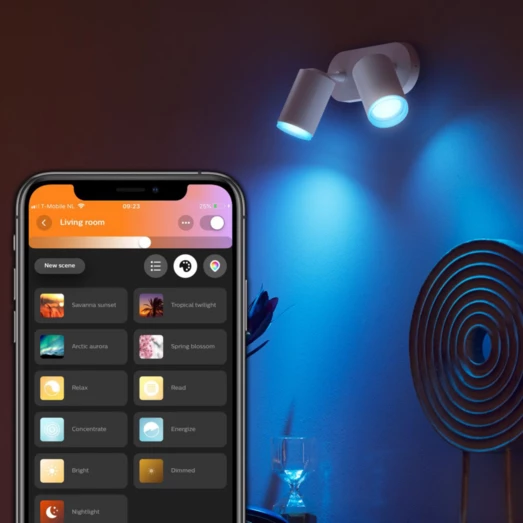 Philips Hue White and Color Ambiance gør det muligt, at tilpasse din belysning i hjemmet efter dine præferencer. Nyd de 16 millioner farvenuancer med dit Philips Hue System. Sæt kulør på hverdage, weekender og skab lige den atmosfære du ønsker i hjemmet. Udover at skifte mellem de mange nuancer og farver, kan du ligeledes dæmpe lyset, synkroniser det til din yndlingssang eller anden underholdning.