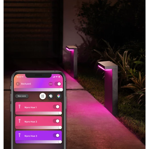 Fuldend dine udendørsarealer med denne Nyro piedestal. Nyro piedestal er en af de nye intelligente teknologier indenfor udendørslamper og er nem at anvende som del af Hue eco-system. Der er ubegrænsede muligheder når det kommer til at gøre din udendørsbelysning til en ekstraordinær oplevelse. Du kan nemt skabe den rigtige stemning til enhver anledning og gem dine yndlingsindstillinger så du ikke skal indtaste dem hver gang. Nyro piedestal er vandtæt og har en levetid på op til 25.000 timer. Den kan med fordel placeres over et større areal i din have, terrasse eller ved forsiden af huset.