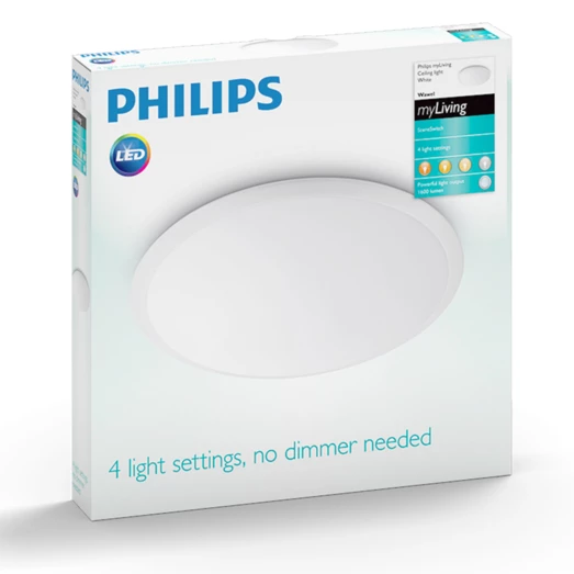 Philips myLiving WAWEL LED loftslampe leveres med indbygget LED for at optimere lysudbyttet og ensartetheden. Reguler lysstyrken alt efter dit humør med trinvist justerbare hukommelsesfunktioner.