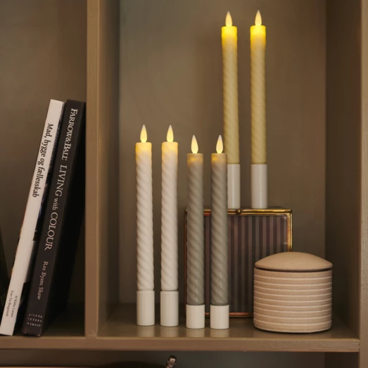Hver med på moden med snoede lys. De flotte snoede Sara kronelys fra Sirius med bevægelig LED-lys flamme, giver et hyggeligt naturligt lys, lige som ægte lys kan.